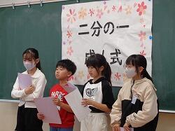 2月21日(水)今日は中学年の参観日でした。4年生では、二分の一成人式が行われました。はじめに、一人一人が将来に夢について発表しました。どのようにすればなれるのかを調べて、夢への具体的な道筋を語りました。その後、校長が代表児童に二分の一成人証書を渡し、夢が叶えられるようにそれを支える人生の土台をしっかりつくっていってほしいという話をしました。最後は歌のプレゼントをして感謝の手紙を保護者の方に手渡しました。10年間の我が子の成長をふり返って涙する方もおられました。成人を迎える頃どんな成長を見せてくれるのかとても楽しみになりました。