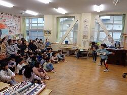 10月12日(木)みどりコンサートが行われました。以前からあった行事ですが、コロナのためにしばらくできませんでした。昨年度、音楽をされている保護者の方の協力で復活をし、今年も4名の音楽家による演奏会が実施できました。今年は、コスモスプロジェクトの一環として、日頃お世話になっているいろいろなボランティアの方も招待したところ、34名の方が参加してくださいました。音楽を聴くだけでなく、学年ごとに子どもたちも参加して、セッションを行いました。これまで音楽の時間に練習していたこともあり、プロの音楽家の演奏に合わせて、子どもたちも楽しそうに演奏や合唱をしていました。最後に感想を聞いたところたくさんの手が挙がり、子どもたちの心に響いたコンサートであったことが分かりました。参加された地域の方からも、子どもたちの一生懸命な姿に感動したという意見がたくさん聞かれました。コスモスの花が咲き始める中、心温まるコンサートとなりました。みなさんありがとうございました。