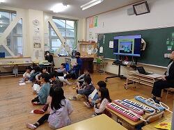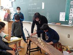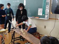 2月28日(水) 5年生が音楽の時間に琴について学びました。地域で琴を所有されている方が、もし子どもたちが琴を学ぶ機会があれば協力できますと言ってくださり、早速来ていただきました。初めて見る児童も多く、触るのはもちろん初めての子どもばかりでした。おっかなびっくり触りながらも、そのきれいな音色に感激していました。日本古来の文化に触れることができ、貴重な体験となりました。