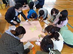 2月29日(木) 学校運営協議会の開催に合わせて、「緑ヶ丘小や緑ヶ丘地区がもっと楽しく、元気になるには何をすればよいか」というテーマで熟議を行いました。参加したのは、5・6年生児童、職員、保護者、学校運営協議会委員、コスモスプロジェクトボランティア、地域の方総勢90名ほどです。まず、6年生が五つのグループに分かれて総合的な学習の時間に考えた、まちづくりのアイデアについてタブレットを使って説明しました。その後、10のグループに分かれて自分の考えを付箋に書き、それについて話を深める活動をしました。様々な立場からの意見を聞くことができ、たくさんのアイデアが出ました。このような会は初めての開催でしたが、こんなにも熱い熟議になるとは。緑ヶ丘の子どもたち、保護者、地域のみなさんの意識の高さを感じ、さすがだと思いました。今日出された意見は、それぞれの立場で、どのようにすれば実現できるかを考えて進めていきたいと思います。ワクワクがあふれるすばらしい熟議になりました。参加されたみなさん、ありがとうございました。