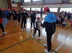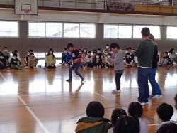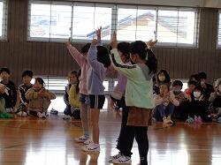 3月8日(金) まずは体育館でおわかれ集会がありました。次年度最高学年となる5年生が準備を進め、本番では進行をしてくれました。じゃんけんピラミッドと6年生丸ばつクイズ。6年生もいっしょにとても楽しいひとときを過ごしました。また、各学年が作成した大型寄せ書きを6年生にプレゼントしました。6年生からは、明るく楽しいクラスの雰囲気どおりに、ダンスを取り入れたお礼の言葉を披露し、最後まで会を盛り上げてくれました。