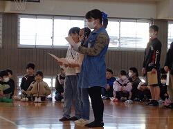 3月13日(水) 毎月行われているボランティアの皆様による「読み語り」も本年度最後の回となりました。特に6年生は,1年生の頃から6年間、たくさんの本を読み聞かせしていただきました。今日は最後に、これまでの感謝の気持ちを込めて手作りの花束を渡しました。ボランティアの皆様、朝のお忙しい中、毎回来ていただきほんとうにありがとうございました。