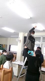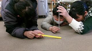 4年生~理科「もののあたたまり方」の学習です。高いところと低いところでの室温の差を調べています。