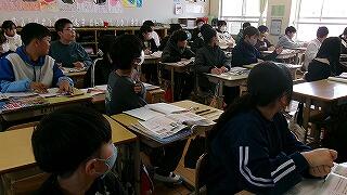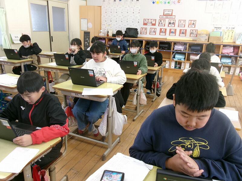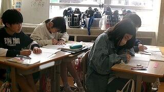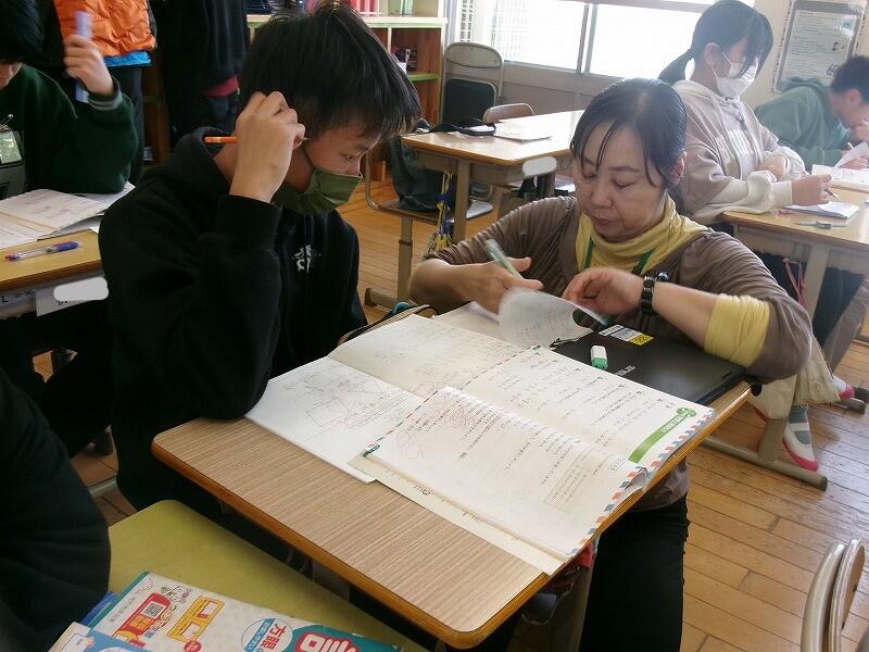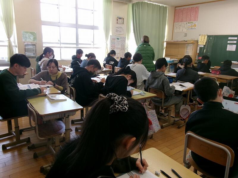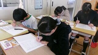 3年生は、今週行われる学力テストに向けて、練習問題を解いて答え合わせをしていました。