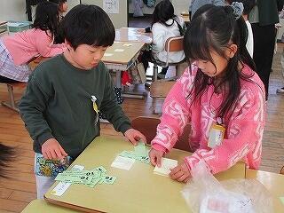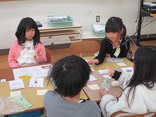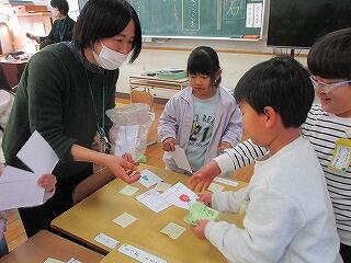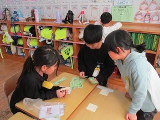 3年生~外国語活動 クレイトン先生と一緒にカードゲームを楽しんでいます。