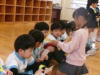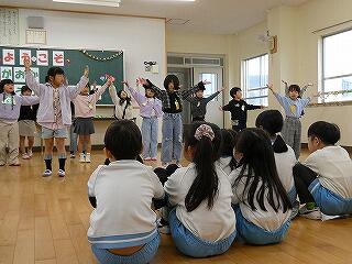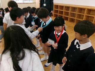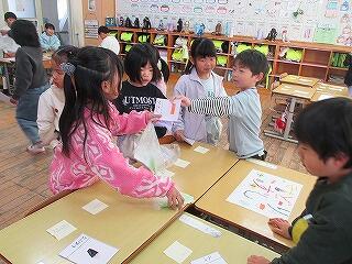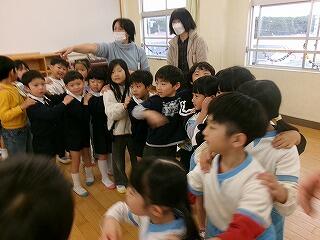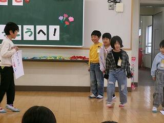 3月6日(金)は、お別れ遠足でした。お天気が怪しいため、校内で実施することになりました。はじめに体育館で、運営委員会の企画で、卒業間近の6年生と全校児童とのお別れ集会を開きました。みんなでゲームを楽しんだり、各学年から6年生へ寄せ書きのプレゼントをしたりしました。最後に6年生からお礼の言葉の贈り物でした。下級生たちのよいところをアイデアいっぱいに発表してくれました。