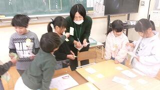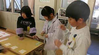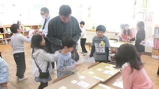 2月19日(木)、1年生が生活科で地域の方と昔の遊び体験を楽しみました。今日体験できたのは「めんこ、こままわし、けん玉、お手玉、あやとり、ふくわらい」の6つの遊びです。どんなふうに遊ぶのか地域の方に教えていただきながら夢中で遊びました。地域の皆様、子どもたちのために温かいご支援をいただき、誠にありがとうございました。