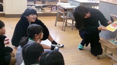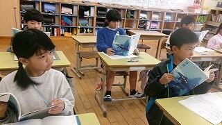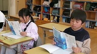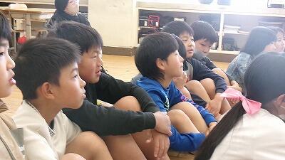 2月13日(金)の朝は下学年の読み語りの日です。絵本の世界に夢中の3年生の様子です。