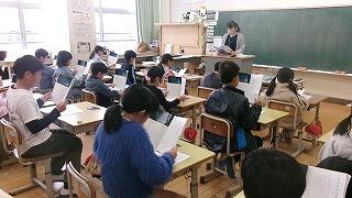 3月12日(木)、3年生と4年生の算数でそろばんの学習が行われました。ご指導くださるのは、延岡旭珠友会の今村聖先生です。今村先生のそろばんのはじき方をテレビに映しながら、ひとつひとつ分かりやすく指導いただきました。はじめて習う子どもたちもしっかり玉をはじき、計算できていました。今村先生、ご多用の中ご指導くださり、大変貴重な時間を誠にありがとうございました。