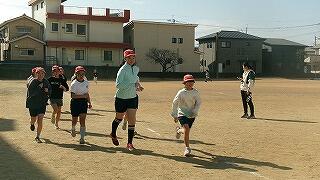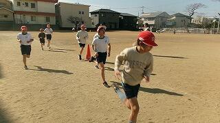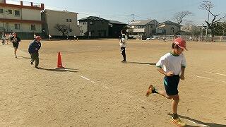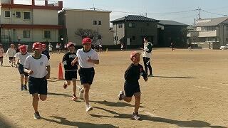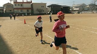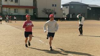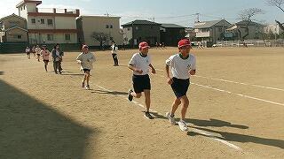 2月5日(木)4校時、運動場では5年生の持久走練習です。5分間、自分のペースを維持して走ります。