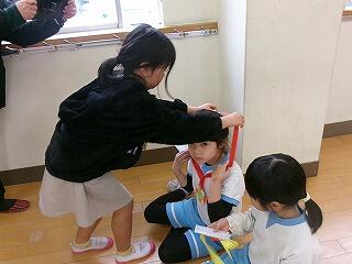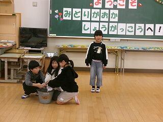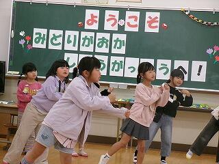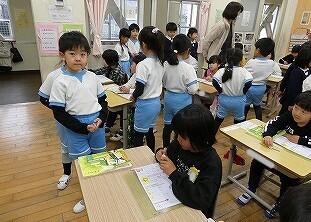2月6日(金)、幼保小交流会が開かれました。お越しくださったのは、校区内の緑ヶ丘保育園と聖心ウルスラ学園付属幼稚園の年長組の園児さんたちです。この日のために、1年生と6年生が一緒に会場作りやプレゼントのメダル作りの準備をしてきました。はじめに、1年生の授業参観です。小学校の授業に興味津々の年長さん。1年生も、かわいい後輩たちにじっくり観てもらってうれしいやらちょっぴり照れくさいやらの中、胸を張って目を輝かせて学習していました。続いて集会室へ移動して交流会を行いました。緑ヶ丘小の校歌や運動会で踊ったダンスを披露したり、「学校のきまり」をクイズや寸劇で一生懸命に披露したりしました。最後に、じゃんけん列車で大盛り上がり!1年生と年長さんのじゃんけん列車、とってもほほえましいひとときでした。貴園関係者の皆様、ご来校誠にありがとうございました!