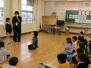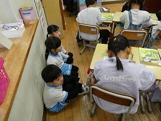 終わりのあいさつで、自分の感想をたくさん伝えてお礼を表します。図書ボランティア「緑の風」の皆様、お忙しい中いつも読み語りをありがとうございます。