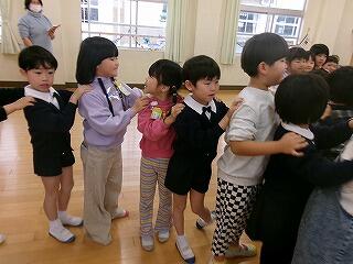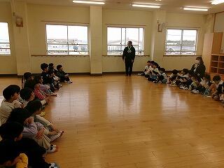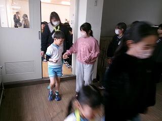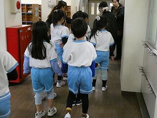 授業参観の後は、3階の集会室へ。6年生が会場まで手をつないで連れて行ってくれました。