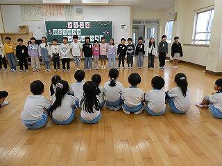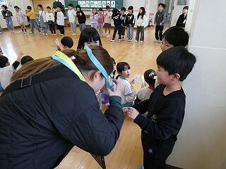 3月23日(月)、体育館で1年生と6年生が最後の交流会を開いていました。6年生が企画した「なぞなぞゲーム」と「王様ドッヂボール」で1時間たっぷりと思い出づくりができました。
