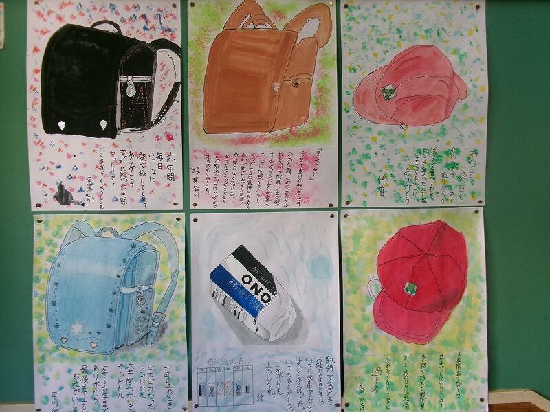 教室には6年間の思い出が詰まった大切な物をていねいに表現している作品が掲示されています。とても素敵です。
