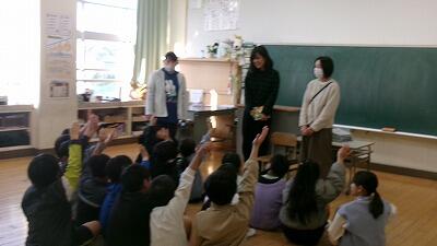 11月20日(木)、職員参観月間の今日はひまわり1での授業、3年生、4年生、5年生の国語科学習です。教室を3つに仕切ってそれぞれに課題解決に取り組みました。担任の先生がタイミングをみながら発問を投げかけ、本文を手がかりに考える時間を作ります。資料や教具の工夫を通して、子どもたちの考えを引き出していきました。普段は国語科を3学年同時に学習する機会はあまりないようですが、今日は、3学年の学習の様子を職員が参観できるように計らっていました。みんな熱心に作業に取り組み、意見を述べる姿が見られました。