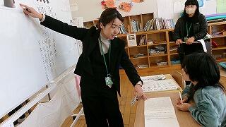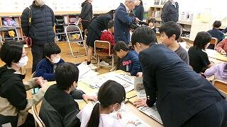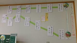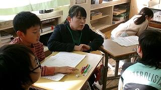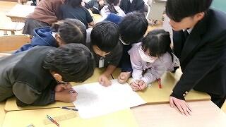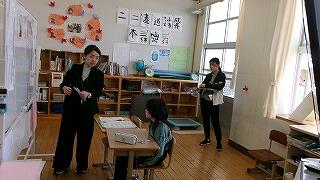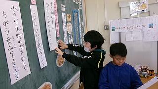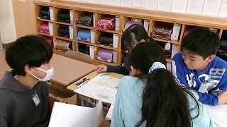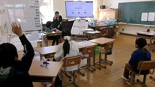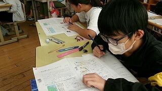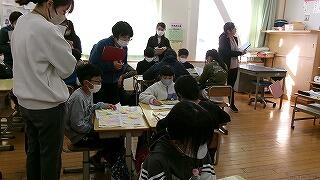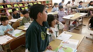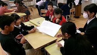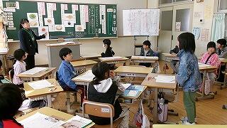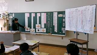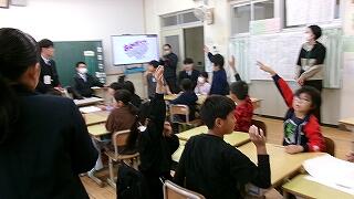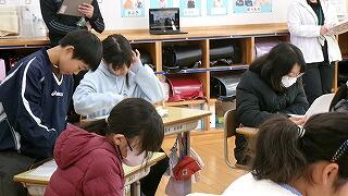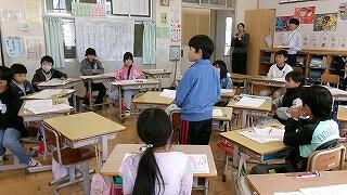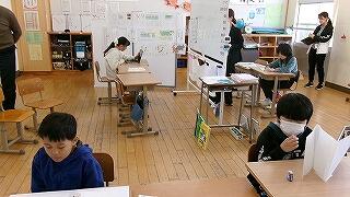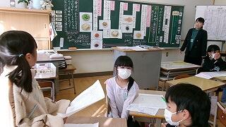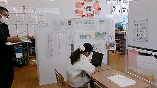 11月20日(木)、職員参観月間の今日はひまわり1での授業、3年生、4年生、5年生の国語科学習です。教室を3つに仕切ってそれぞれに課題解決に取り組みました。担任の先生がタイミングをみながら発問を投げかけ、本文を手がかりに考える時間を作ります。資料や教具の工夫を通して、子どもたちの考えを引き出していきました。普段は国語科を3学年同時に学習する機会はあまりないようですが、今日は、3学年の学習の様子を職員が参観できるように計らっていました。みんな熱心に作業に取り組み、意見を述べる姿が見られました。