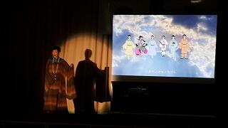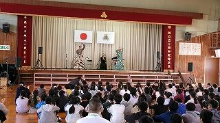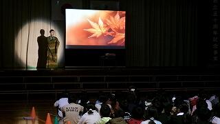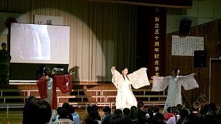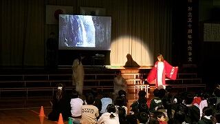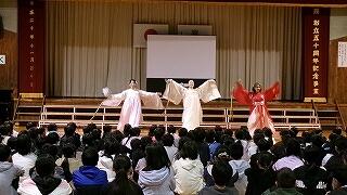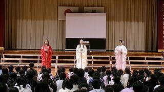 11月13日(木)、4校時に鑑賞教室「柴田美保子氏による『天語り』公演」が体育館で開かれました。古事記に描かれた物語を3人のダンサー、荒武様、湯川様、黒木様による「三女神」の舞で華麗に幕開けです。そして会場の照明がさらに暗くなると、女優 柴田美保子氏が登場、スクリーンに映る物語の描写とともに天孫降臨の歴史が叙情的に語られていきました。地元延岡の文化の奥深さを目で耳で心で感じ、ふるさとの宝物として認識できる貴重な機会となりました。柴田美保子様、ダンサーの皆様をはじめ、延岡観光協会様、延岡市教育委員会様、各関係者の皆様に心より感謝申し上げます。