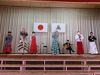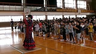 11月17日(月)、3~4校時にフラメンコ鑑賞教室を開きました。本校の音楽専科、田村先生がプロのフラメンコダンサー、歌手、ギタリストを学校に招待され、おかげさまで実現の運びとなりました。8名の皆様による情熱的でダイナミックな表現にたちまち魅了される子どもたち。異国情緒ただようムードに包まれ、「オーレ!」のかけ声をみんなで届けながらその雰囲気を堪能しました。後半は音楽に合わせて全校でフラメンコ体験!先生方も子どもたちに負けじと踊りを披露しました!スペインの伝統芸能「フラメンコ」を肌で感じる貴重な体験をいただきましたゲストの皆様に心より厚く御礼申し上げます。