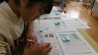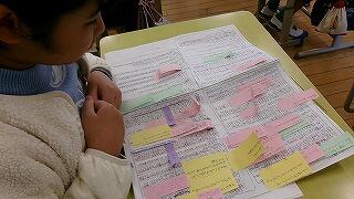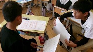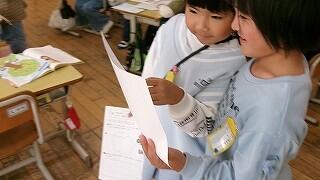 11月19日(水)、1年生の道徳「わすれていることなあい」の時間です。友達と書いたことを交流し合っています。