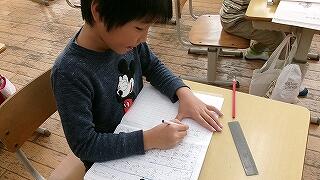 2年生は国語「おもちゃの作り方」の説明文の発展学習です。説明文の書き方を学び、今度は自分でおもちゃ作りの説明を書く練習をしています。