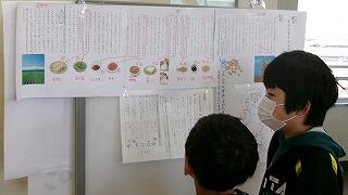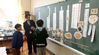 11月18日(火)、職員参観月間に実施される国語科授業が、今日の2校時に3年1組で行われました。単元「すがたを変える大豆 食べ物のひみつを教えます」を通して、筆者の具体例の述べ方に注目し、そのよさを学ぶ授業でした。先生が具体例の順序の意図を問うと、子どもたちは言葉に着目しながら根拠をもとに友達と熱心に話し合う姿が見られました。子どもたちの言葉で説明する力の伸びにも感心させられます。これからますます知識や技能を吸収していくことでしょう。