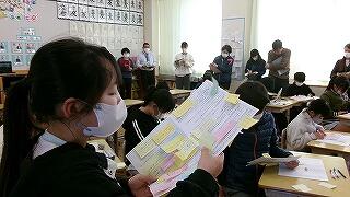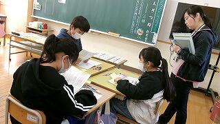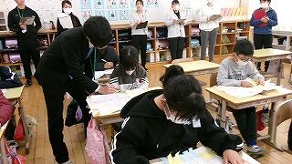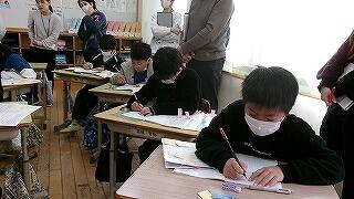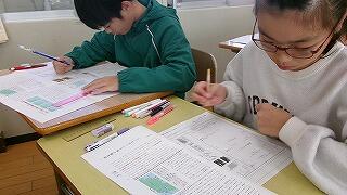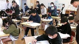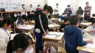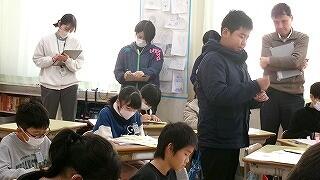 3年生は、今週行われる学力テストに向けて、練習問題を解いて答え合わせをしていました。