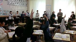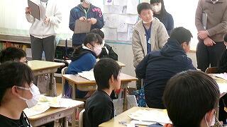 11月12日(水)、延岡工業高校土木科の生徒さん4名による防災教育が、3年生を対象に開かれました。この取組は、生徒さんたち自らが小学生向けに企画して行われたものです。防災に関するクイズ満載で分かりやすく学習することができた3年生。高校生と一緒に楽しい時間を過ごせました。延岡工業高等学校様、貴重な機会をいただき誠に有り難うございました。