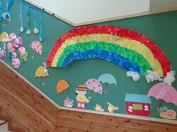 6月6日(火) 今日は、読み聞かせボランティアによる1・2年生の「お話会」がありました。絵本の読み聞かせや紙芝居、ゲームなども交えて楽しい時間を過ごすことができました。図書館に向かう階段には、これまたボランティアのみなさんがつくっていただいた季節の装飾があり、子どもたちが図書室に楽しく向かうことができるようになっています。緑ヶ丘小は、たくさんのボランティアのみなさんに支えられています。