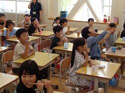 6月9日(金)1年生で歯みがき指導の授業が行われました。本校の養護教諭が中心となって、むし歯の怖さや歯みがきの仕方などについて学習していきました。最後は、学習したことを生かして、実際に歯みがきをしましたが、みんな真剣に取り組んでいました。本校はむし歯のある児童の治療が思ったほど進んでいません。子どもたちが自分でしっかりと考えてむし歯のない生活の仕方を身に付けるようにしていきたいと思います。