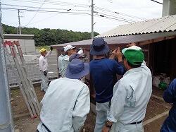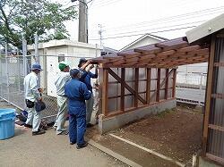 6月12日(火) うさぎがいなくなった飼育小屋が、農具倉庫へと生まれ変わりました。飼育小屋では長年うさぎを飼っていたのですが、昨年度にうさぎがいなくなってしまいました。今後、飼育活動を続けることについては課題も多く、断念することになりました。そこで、使われなくなった飼育小屋を農具倉庫にリフォームすることが進められ、本日、市内の技術員さん達の力も借りて、無事、屋根まで取り付けることができました。今後は、農具倉庫として、緑ヶ丘小学校の環境美化のために活用されることでしょう。