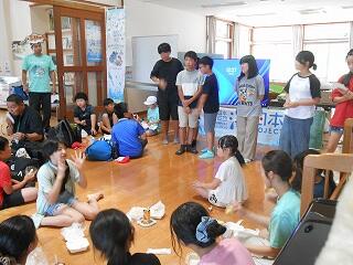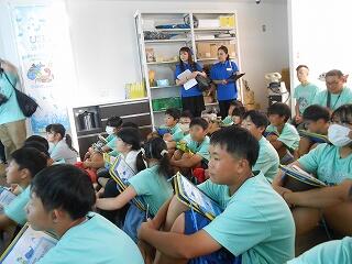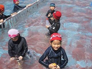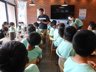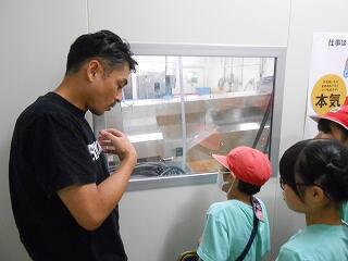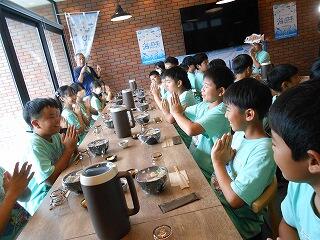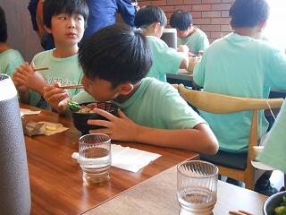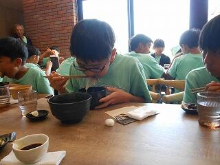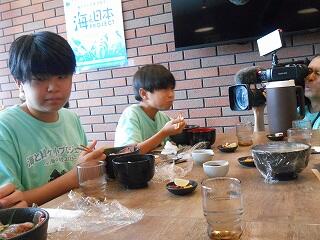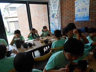 7月14日(月)、6年生の「海と日本プロジェクト」第5弾が開かれました。今日は、海の町北浦町へ出発!ハットリさんと村瀬准教授も一緒にお越しくださって子どもたちと交流しながら活動に参加してくださいました。今日の北浦町の水産加工場である株式会社「新海屋」様にお世話になりました。代表取締役 社長の小川裕介様より養殖についての講話をいただき、実際に工場の中も見学させていただきました。学習の後の昼食は、漁師町の海鮮レストラン「鰤屋金太郎」様で、なんと養殖のブリの「海鮮丼」でした!みんなとってもおいしくいただき、贅沢な体験学習に大満足でした。明日は、引き続き、須美江海水浴場へ行き、シーカヤック体験や生物観察の活動が待っています。延岡の豊かな海の恵みを体感し、その豊かさを未来へとつなげていく生き方に関心をもつきっかけになることと思います。北浦町の新海屋様、鰤屋金太郎様をはじめ、プロジェクト関係者の皆様、誠にありがとうございました。