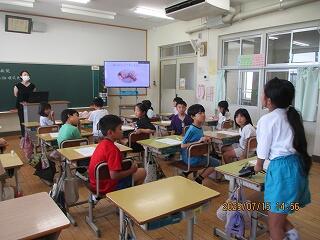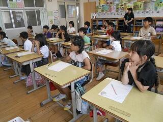 7月15日(火)2校時に、4年生のよのなか教室が開かれました。本日の講師の先生は、社会教育課社会教育指導員の御手洗 雄一先生です。誰もが平等に、自由に生きる権利をもつという観点から、日常の暮らしのさまざまな場面を「あってもよい違いだろうか?」と見直し、人権に対するアンテナを高くする内容でした。熱心に話を聞いて話し合う4年生の姿が見られました。御手洗先生、ご多用の中ご指導いただき、誠に有り難うございました。