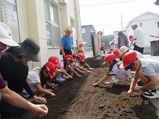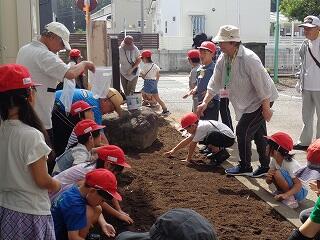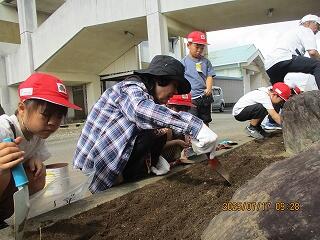 7月17日(木)、1年生がコスモスプロジェクトボランティアの方と一緒にコスモスの種をまきました。場所は、中庭入り口の花壇です。お越しくださった6名の方に、種のまき方を教えていただきながら、コスモス園が完成!芽が出てくるのが楽しみです!地域の方も「今日を楽しみにしてました」「また見に来ますね」とおっしゃってくださいました。ご多用の中、ご参加いただき誠にありがとうございました。