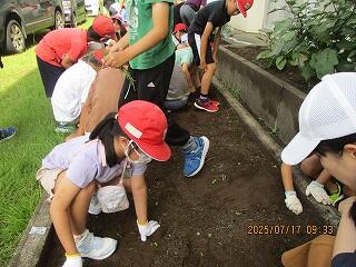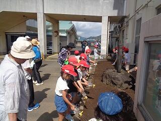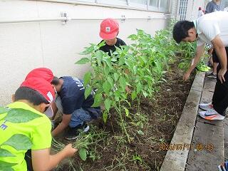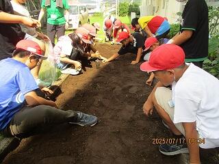 2~6年生たちも、学級花壇や畑の雑草抜きを頑張りました!