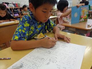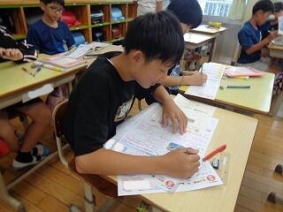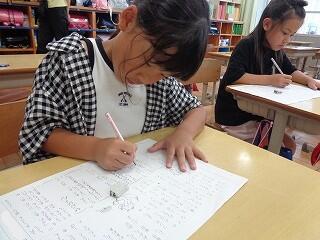 〇1年生は「2学期にがんばりたいこと」について作文を書いていました。終わったらプリントのやり直しや問題集などにそれぞれ黙々と取り組んでいます。