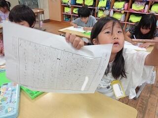 作文発表は1年生と6年生です。2学期に頑張りたいことをそれぞれ立派に発表しました。1年生は、「運動会のかけっこで1位を目指すこと、どんどん友達を増やすこと、算数の計算の練習を頑張ること」について、6年生は「自主性と感謝を大切にし、運動会などの学校行事や委員会活動で自主的に活動したり、積極的な挨拶を心がけて感謝を示したりすること」について述べました。