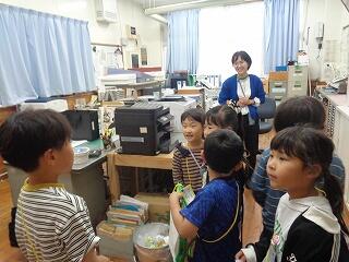 5月9日(金)は、1、2年生の生活科でお楽しみ「がっこうたんけん」を行いました。各グループに分かれて2年生が1年生を案内しながら校内をまわります。2年生は、しっかり役割分担をして、準備をしてきた成果を発揮していました。