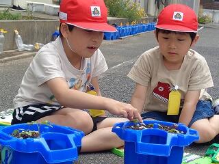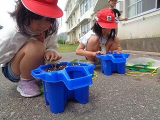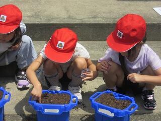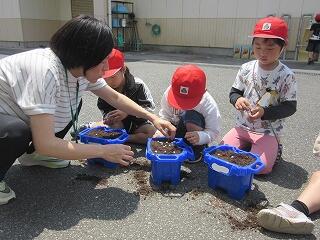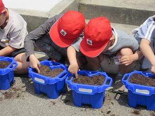 5月12日(月)、1年生はあさがおの種を自分の鉢に植えていました。これから毎日観察して大切に育ててくれることでしょう。