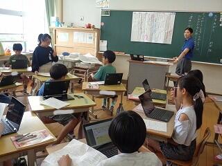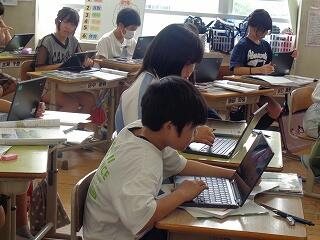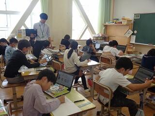 4年生は社会科「わたしたちの県」の学習です。タブレットで県の特産物を調べていました。