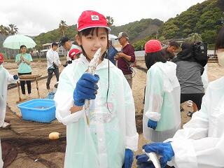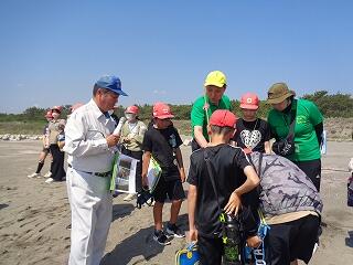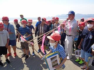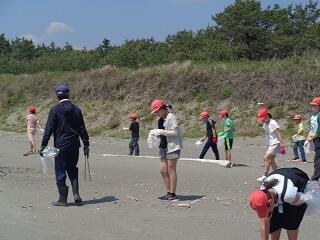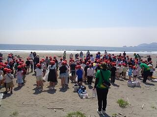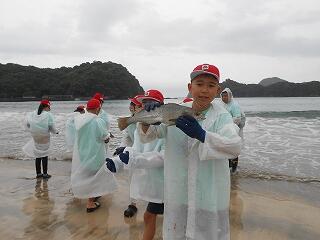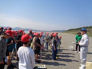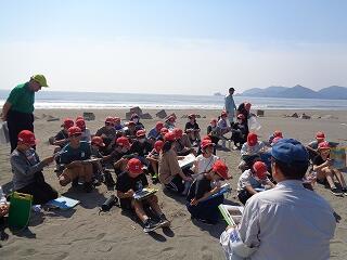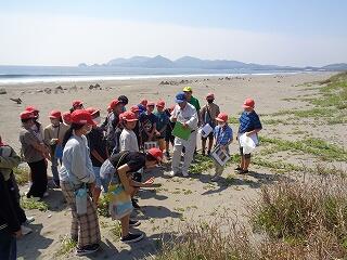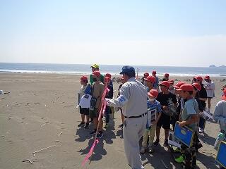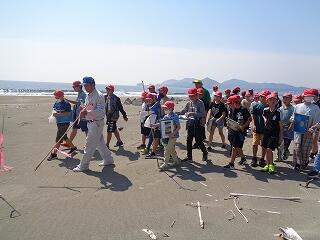 5月13日(火)、校区内の長浜海岸の清掃活動「アカウミガメを守ろう!みどりっ子クリーン作戦」を行いました。まず、2校時に6年生が長浜海岸でアカウミガメ学習会を開きました。講師は、アカウミガメ保護活動をされている吉本哲様です。長浜海岸の特徴や、アカウミガメの産卵場所、キツネの通り道、砂浜のもつ役割など、資料とともに実際に現地を見ながら詳しくお話をいただくことができました。3校時から、全校児童も長浜海岸に集まってきて、いよいよゴミ拾い活動開始です。保護者の方や地域の方も一緒にご参加いただき、一斉にゴミ拾いを行いました。5月から夏場に向けてアカウミガメは産卵期を迎え、緑ヶ丘小のすぐ目の前の海岸に上陸してきます。今日の活動を通して、県の指定天然記念物であるアカウミガメについての理解を深め、自然愛護や思いやりの心、ふるさとへの誇りと愛着が育まれることを願っています。本日は大変意義深いご講話をいただきました吉本哲様、そしてゴミ拾い活動に一緒にご参加いただきました保護者の方、地域の皆様に心より感謝申し上げます。