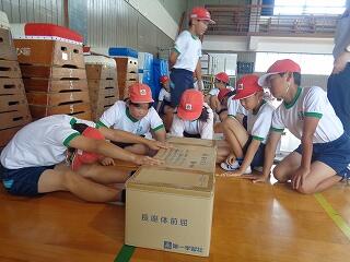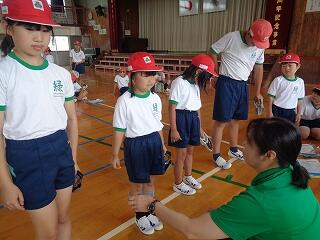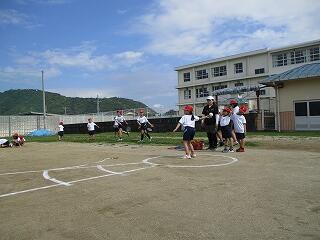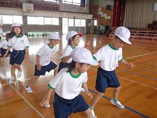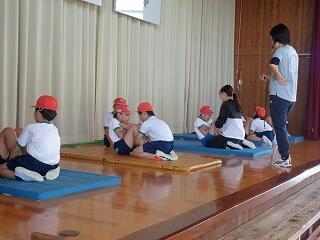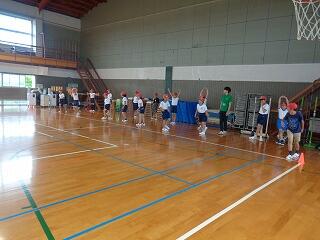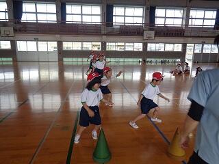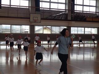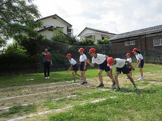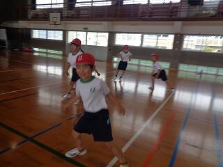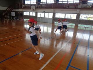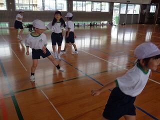 5月16日(金)、1年生は体育でまもなく開かれる「体力テスト」に向けての練習をしていました。体を楽しく動かした後、反復横跳びの練習です。小学校初めての体力テスト、がんばってくださいね。