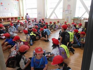 〇学校到着、解散式。学校に到着した5年生たちの充実感あふれるすがすがしい表情にとってもうれしくなりました。2日間、子どもたちの仲間を思う姿、熱心に活動する姿がたくさん見られ、所員の先生方からも賞賛のお言葉をいただきました。本体験を通して大きな自信につながったことと思います。これからますます学校を引っ張る高学年に成長していくことでしょう。むかばき青少年自然の家の皆様、貴重な学び多い体験をいただき、ご指導誠にありがとうございました。