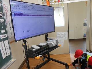 【フォームの情報を教室でチェック。お迎えの到着と確認が運動場から届く。】
