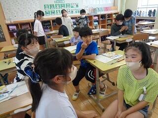 4年生は国語科「一つの花」の読み深めの学習です。みんなで話し合う時間です。