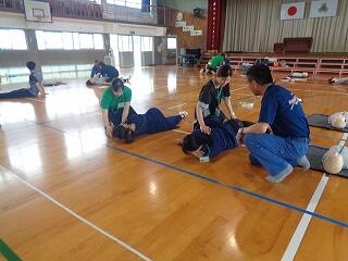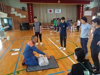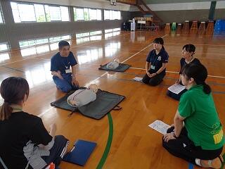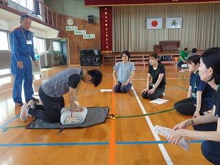 5月20日(火)に、延岡消防署より3名の方をお招きして、心肺蘇生法の職員研修を実施しました。一次救命処置としての胸骨圧迫ならびにAED使用の演習を中心に、的確な判断と行動の基礎を押さえました。その場に居合わせた人から救急隊へ、救急隊から医師へ、「救命のリレー」が途切れないことの大切さを教えていただきました。消防署の皆様、ご指導いただき誠に有り難うございました。
