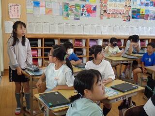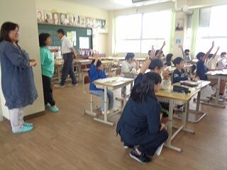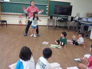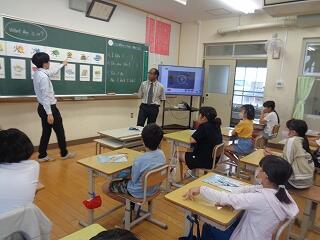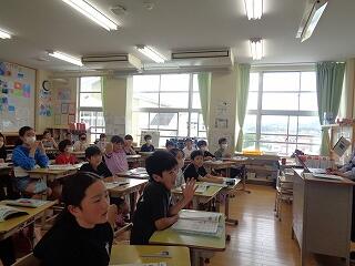 5月29日(木)、4年生は外国語活動でALTのクレイトン先生も一緒に楽しく英語に慣れ親しんでいます。
