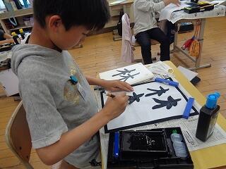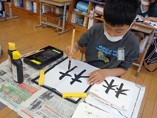 4年生は書写です。「林」を書くための練習をそれぞれ行っています。