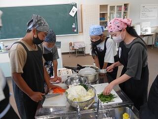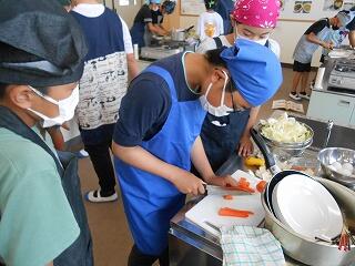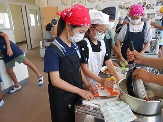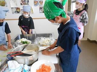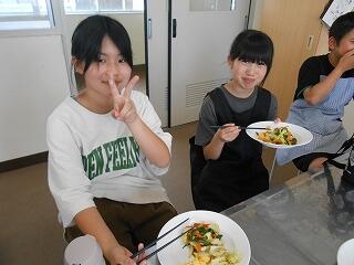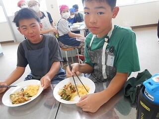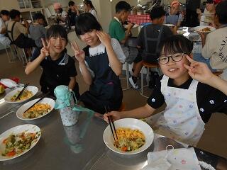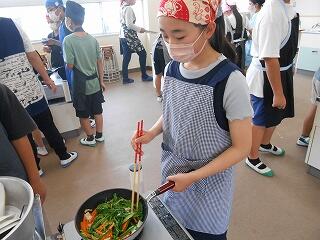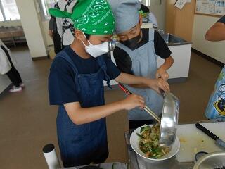 5月23日(金)、6年生が家庭科で調理実習を行いました。今日のメニューは「スクランブルエッグ」と「野菜いため」です。手軽にできる調理法を楽しく学び、おいしくできました。家庭でも学習を生かして調理にチャレンジしてほしいですね!