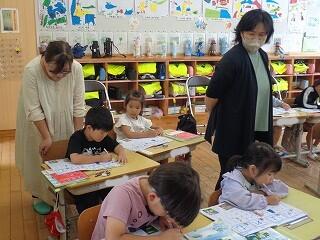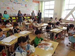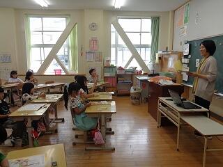6月12日(木)、幼保小連携に係る1年生の授業参観が行われました。校区内の緑ヶ丘保育園と聖心ウルスラ学園付属幼稚園の先生方が来校され、入学して2ヶ月の1年生の国語科の様子をご覧いただきました。子どもたちはとっても喜んで、いつもの頑張る姿をいきいきと見せていました。相互の授業参観や情報交換を通して、就学前の接続の観点から、子どもたちの学びの連続性を理解に努めてまいります。緑ヶ丘保育園様、聖心ウルスラ学園付属幼稚園様、本日はご多用の中ご参観いただき誠にありがとうございました。